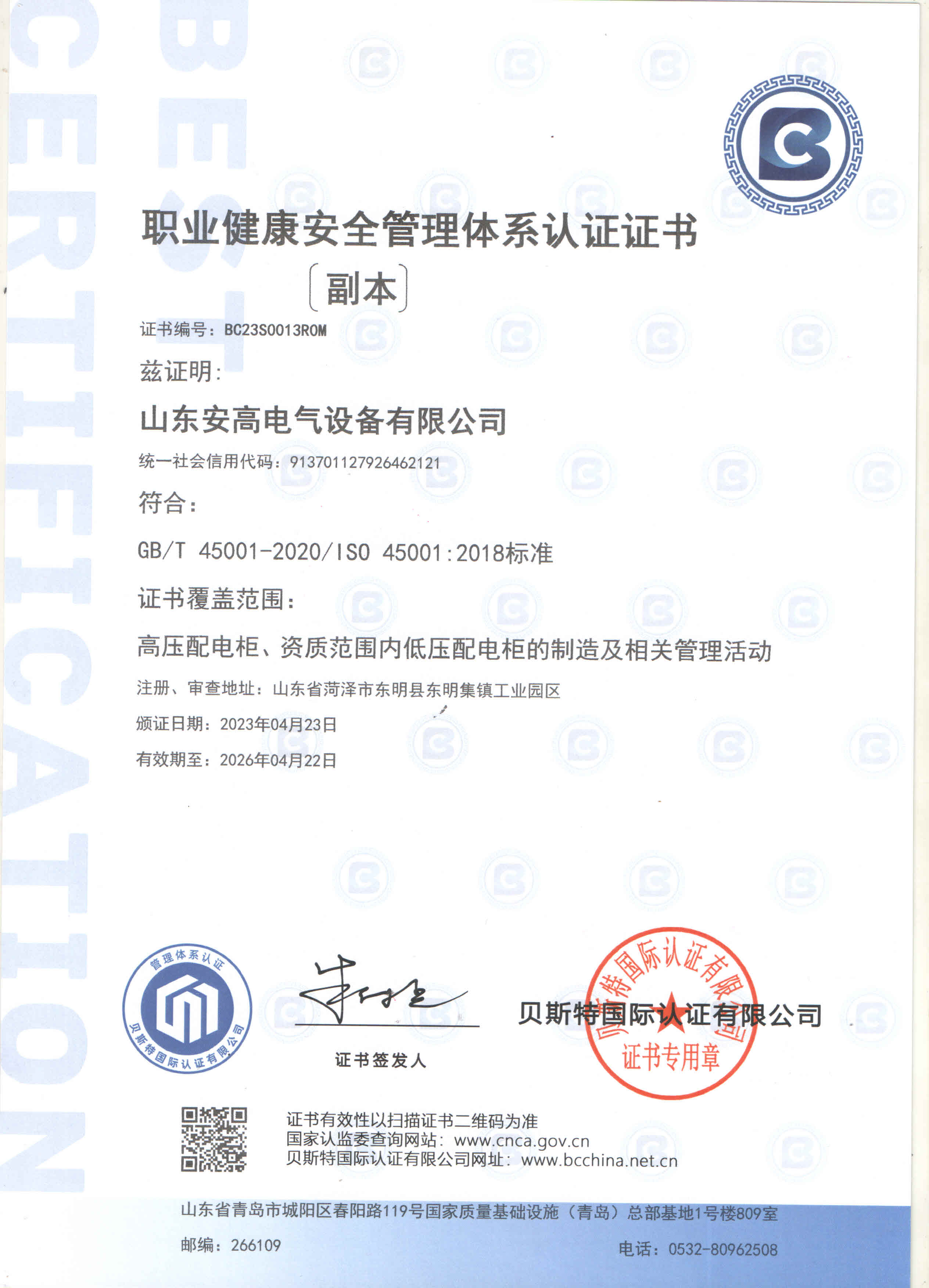 安高經(jīng)過了多年磨練,先后榮獲“守合同重信用企業(yè)”、“專精特新”中小企業(yè)、“質(zhì)量、服務(wù)、信譽(yù)AAA企業(yè)”、“國家合格評定質(zhì)量信得過產(chǎn)品”、“山東省高新技術(shù)企事業(yè)”等多項(xiàng)榮譽(yù)稱號。